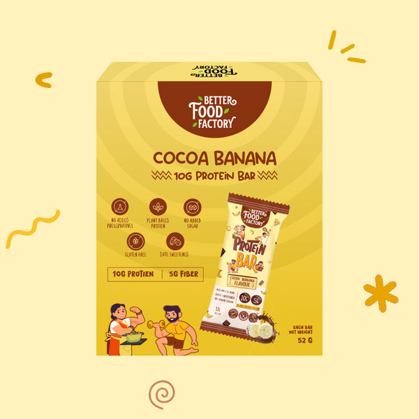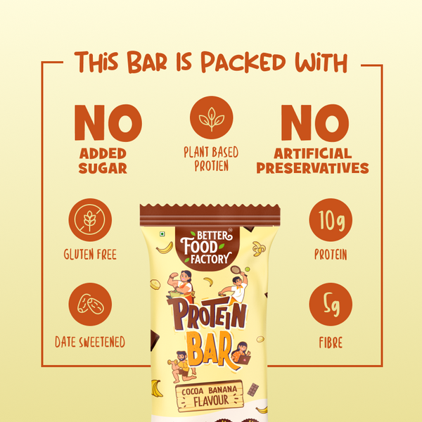 Packed with 10g of high-quality plant-based protein from soy and brown rice, our Cocoa Banana Protein Bar is your perfect post-workout snack or midday pick-me-up. Blended with wholesome oats, crunchy nuts, and a hint of...