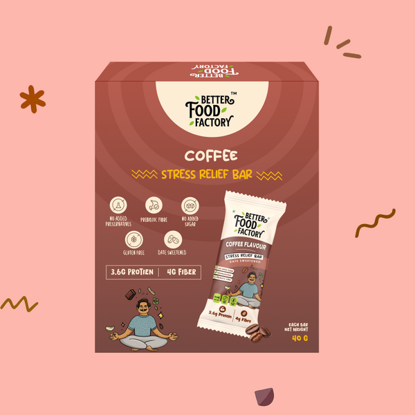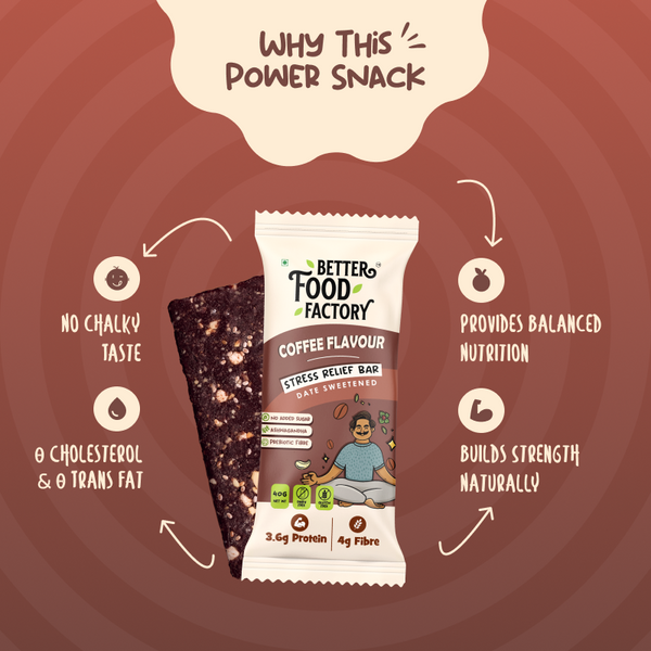 Infused with Ashwagandha, a powerful adaptogen, the Stress Relief Bar helps lower cortisol levels, promotes relaxation, and supports mental well-being.