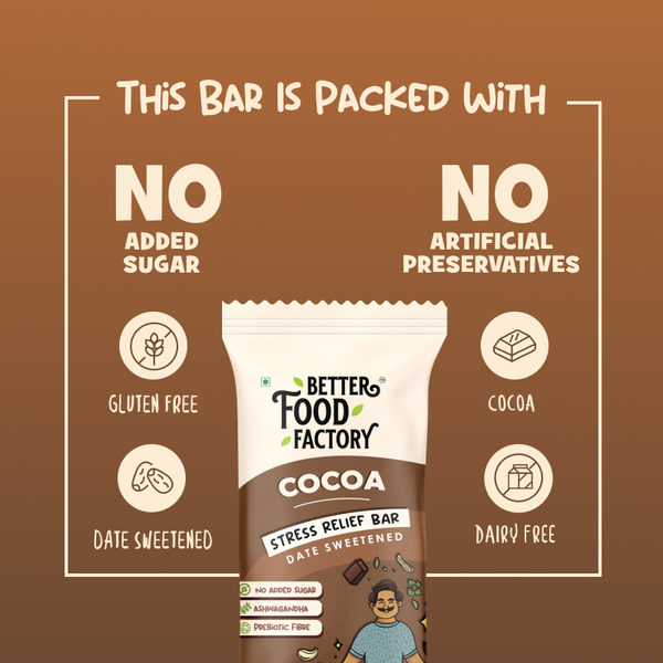 Infused with Ashwagandha, a powerful adaptogen, the Stress Relief Bar helps lower cortisol levels, promotes relaxation, and supports mental well-being.