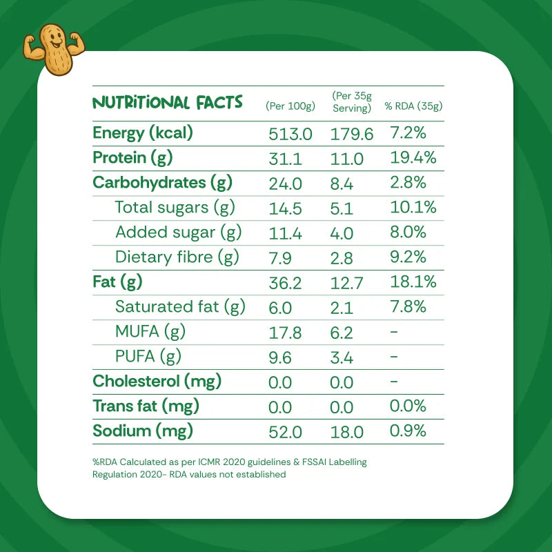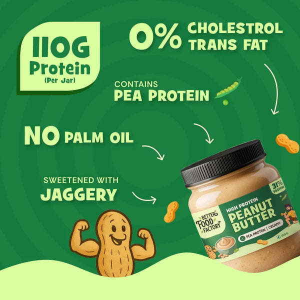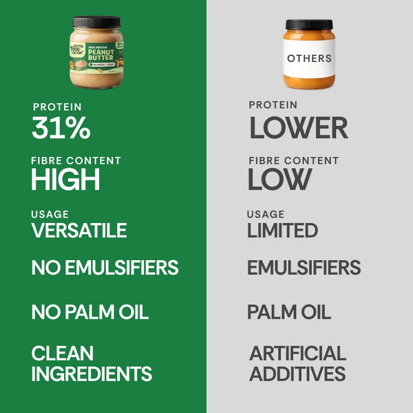 Our High Protein Peanut Butter – Creamy is made for those who want more protein in their everyday meals. Crafted with roasted peanuts and pea protein isolate, this spread delivers 31% protein to support muscle recovery and keep you feeling full for longer. It’s clean, simple, and made without palm oil, emulsifiers, or artificial sweeteners.