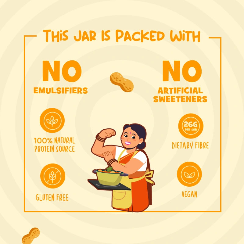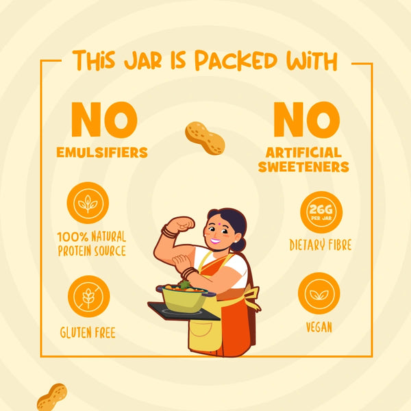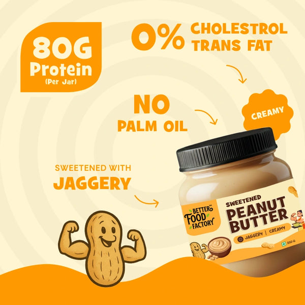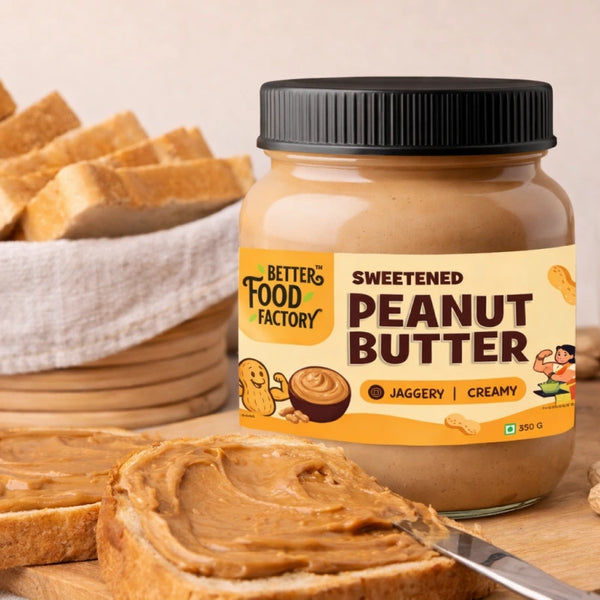 Our Sweetened Peanut Butter – Creamy is a smooth and comforting spread made with roasted peanuts and jaggery. It has a mild, natural sweetness that makes it perfect for everyday use—whether it’s breakfast, a quick snack, or a healthier dessert fix. Made without palm oil, emulsifiers, or artificial sweeteners, this peanut butter keeps things simple and honest.