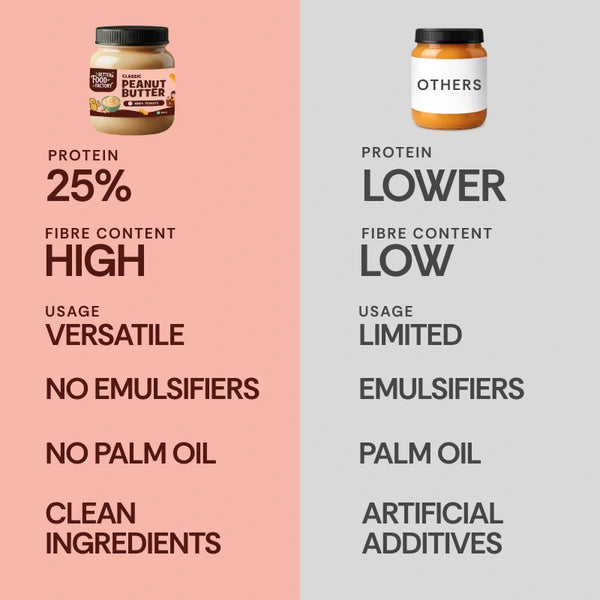 Our Classic Peanut Butter – 100% Peanuts is made with just one ingredient: roasted peanuts. No sugar, no salt, no oils—nothing else. It’s smooth, rich, and naturally packed with protein and healthy fats. With no palm oil, no emulsifiers, and no artificial sweeteners, this is peanut butter in its purest form.