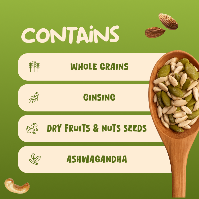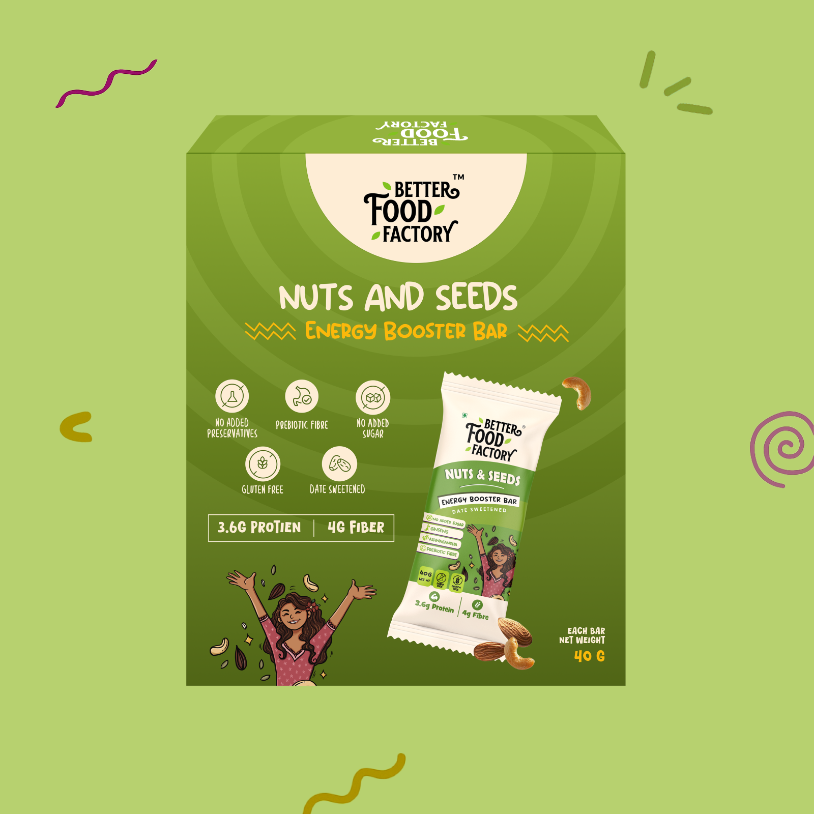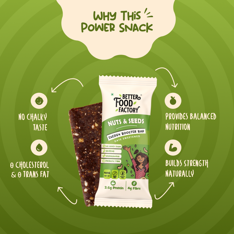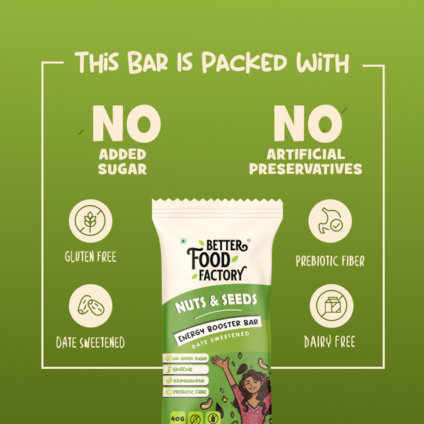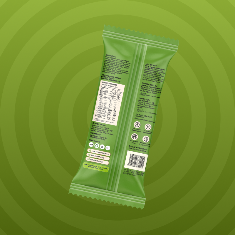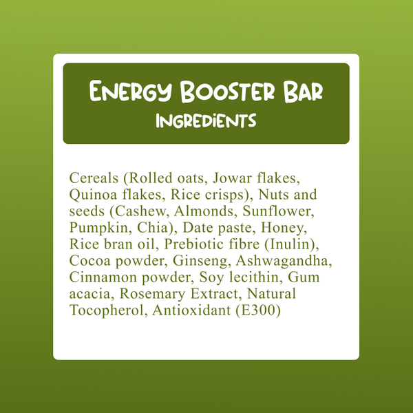 The Energy Booster Bar combines healthy fats, proteins, and carbohydrates from almonds, cashews, and other natural ingredients to give you a slow and steady energy release without sugar crashes.